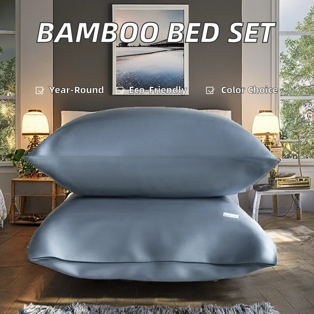100% Bamboo Fiber Woven Modern Solid Color Bedding Set Super King Size Includes Flat Bed Sheet Fitted Duvet Cover