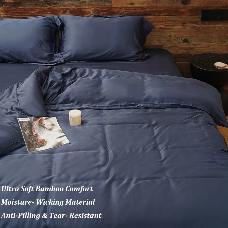 100% Bamboo Fiber Woven Modern Solid Color Bedding Set Super King Size Includes Flat Bed Sheet Fitted Duvet Cover