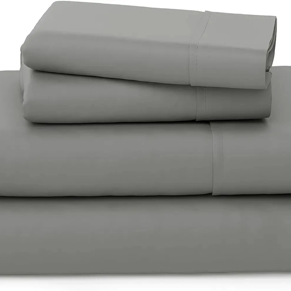 100% Bamboo Fiber Woven Modern Solid Color Bedding Set Super King Size Includes Flat Bed Sheet Fitted Duvet Cover
