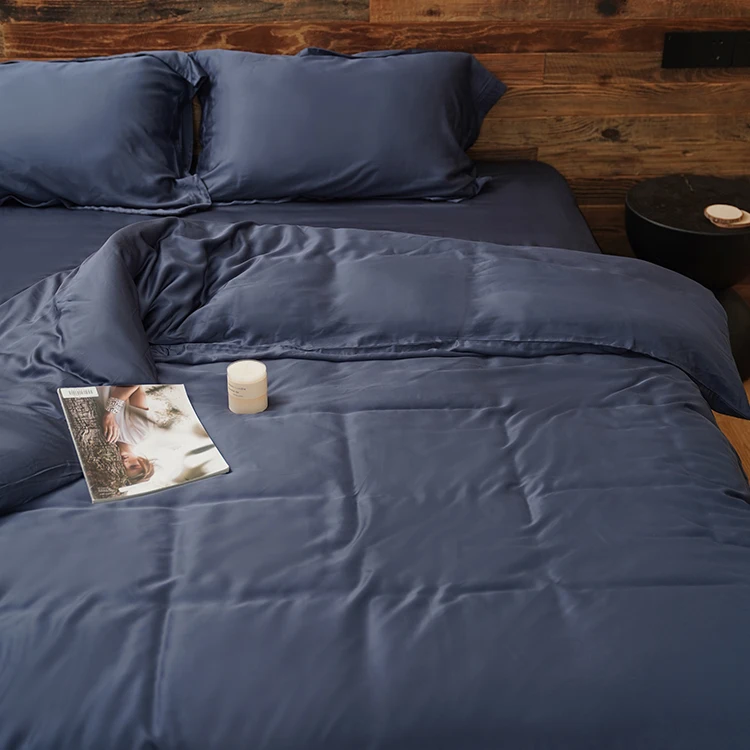 100% Bamboo Fiber Woven Modern Solid Color Bedding Set Super King Size Includes Flat Bed Sheet Fitted Duvet Cover