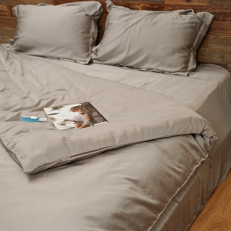 100% Bamboo Fiber Woven Modern Solid Color Bedding Set Super King Size Includes Flat Bed Sheet Fitted Duvet Cover