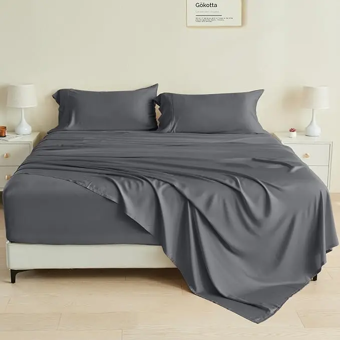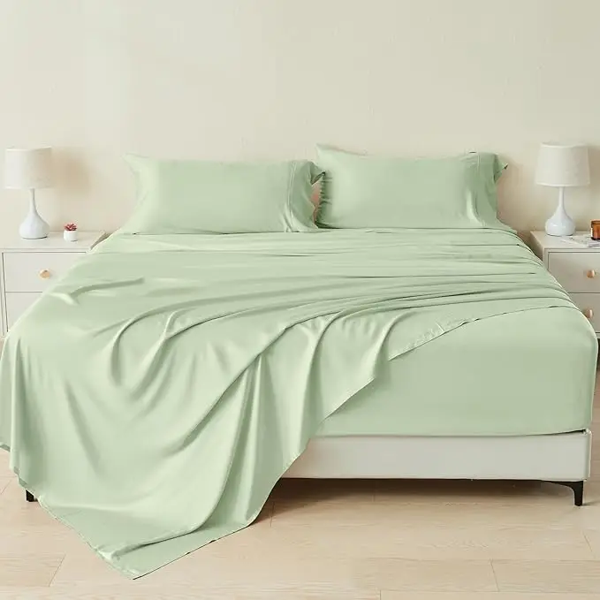 100% Bamboo Fiber Woven Modern Solid Color Bedding Set Super King Size Includes Flat Bed Sheet Fitted Duvet Cover
