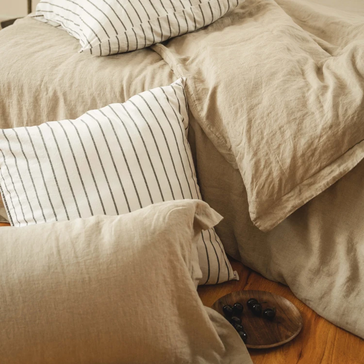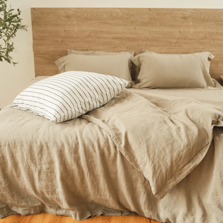 Wholesale Solid Color GOTS Certificate 100% European Flax Linen Bed Sheets Natural French Linen Duvet Cover Bedding Set