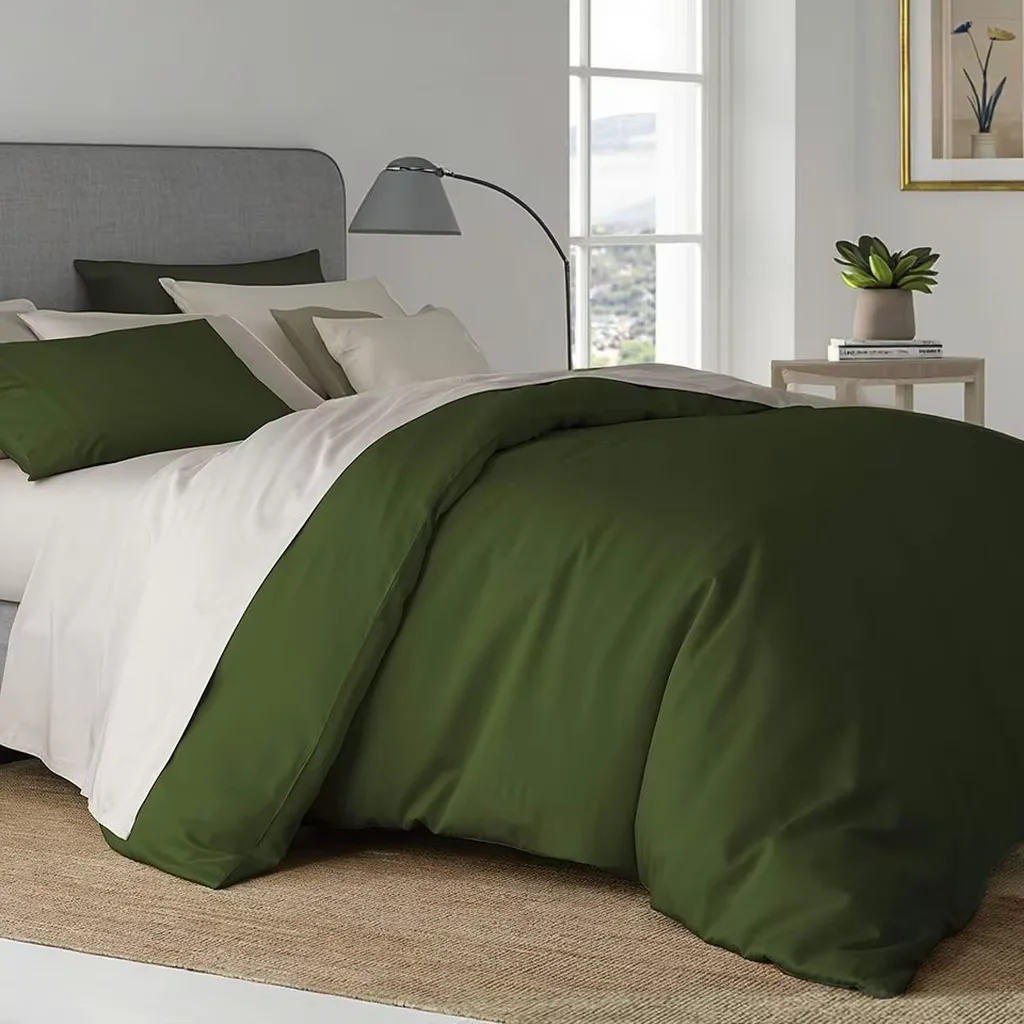 100% Bamboo Fiber Woven Modern Solid Color Bedding Set Super King Size Includes Flat Bed Sheet Fitted Duvet Cover