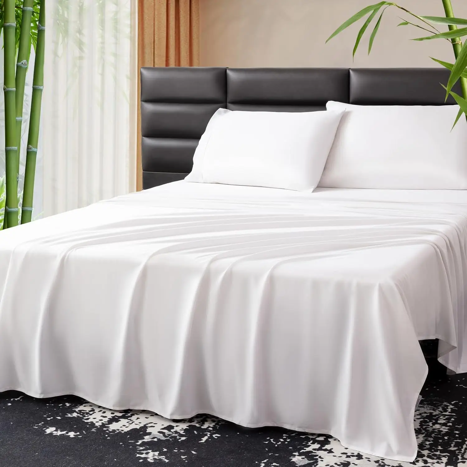 Soft Breathable 100% Bamboo Bedding Sheets Set Solid Color Natural Organic 100% Bamboo Deep Pockets Bedding Sheet