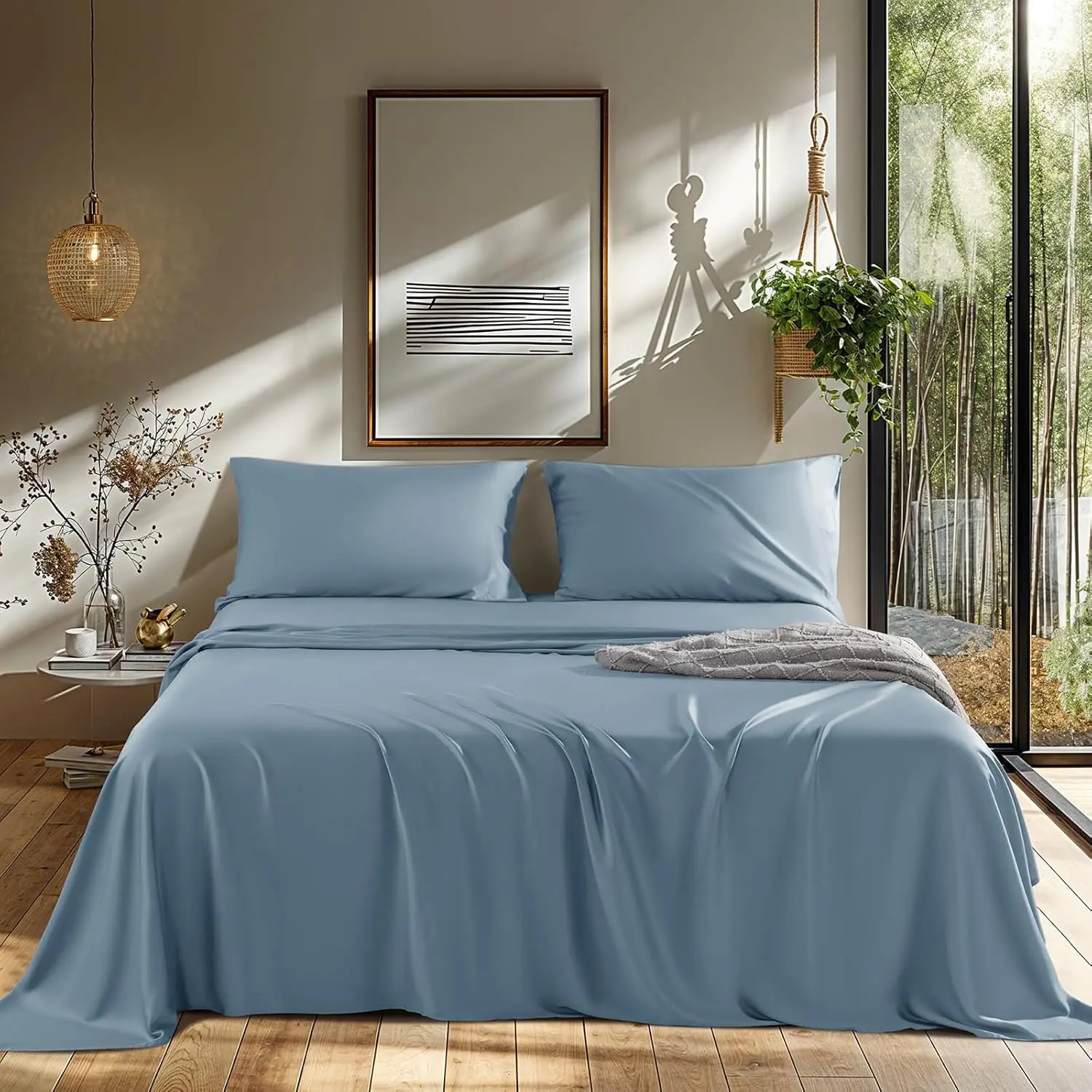 100% Bamboo Fiber Woven Modern Solid Color Bedding Set Super King Size Includes Flat Bed Sheet Fitted Duvet Cover