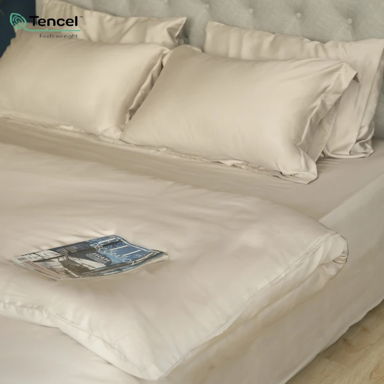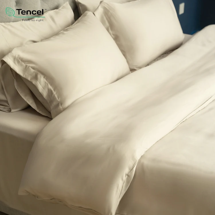 100% Natural Tencel Fabric Bed Cover Set Satin Lyocell Duvet Cover American Style Solid