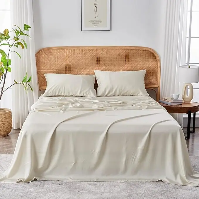Eco Friendly Luxury Bamboo Fiber Bedding Set 4 Pieces Breathable Bed Linen for Hotel Use
