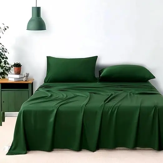 100% Bamboo Fiber Woven Modern Solid Color Bedding Set Super King Size Includes Flat Bed Sheet Fitted Duvet Cover
