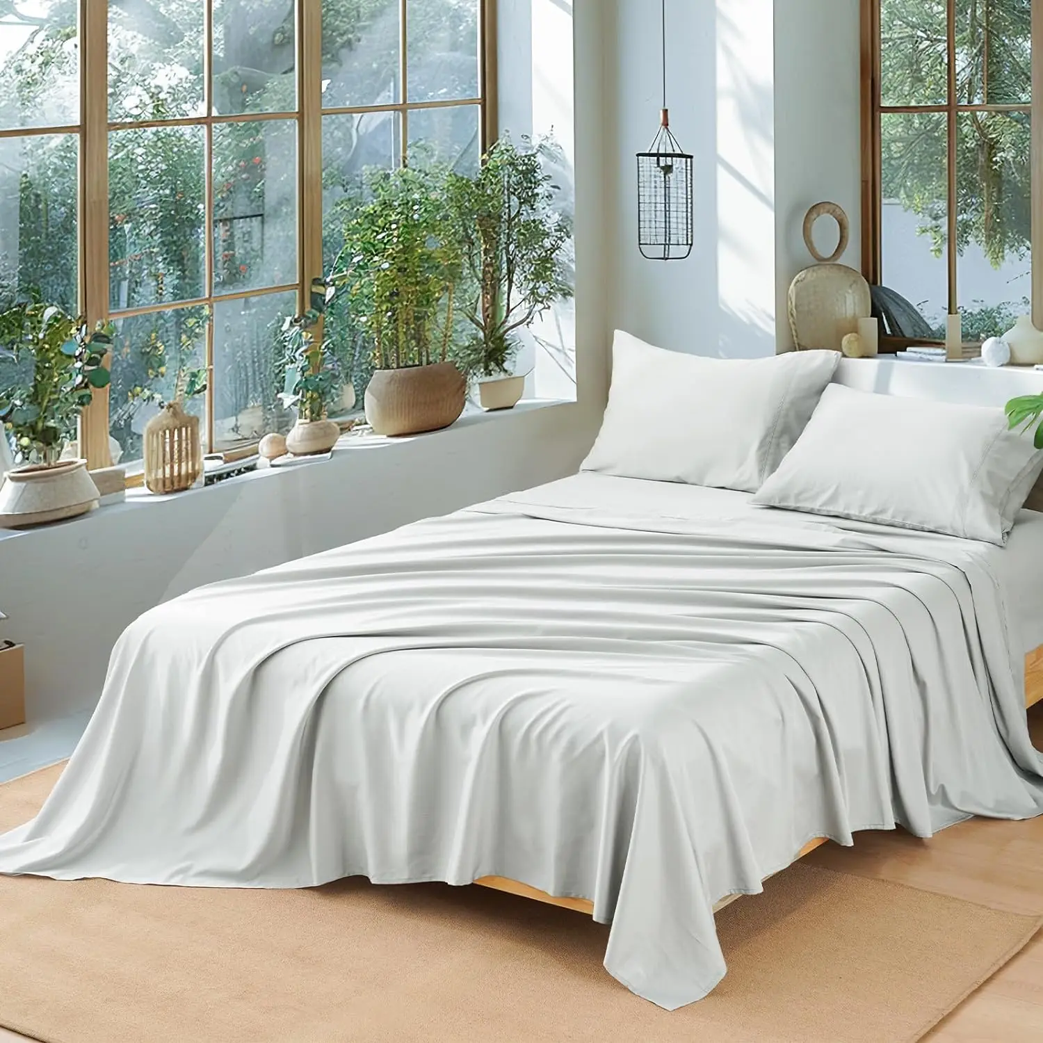 Silky Soft Breathable Tencel Sheets 100% Eucalyptus Sheets Deep Pocket Luxury Hotel Cooling Bed Sheets