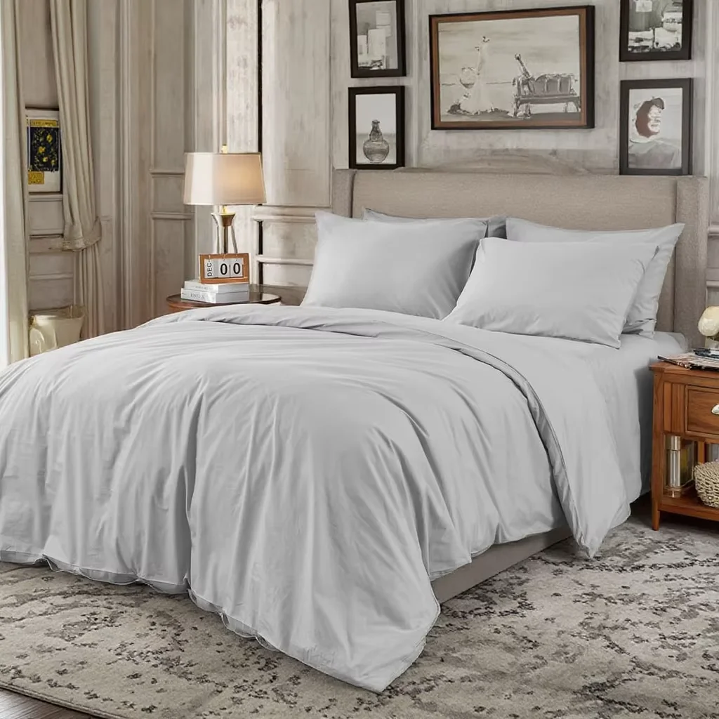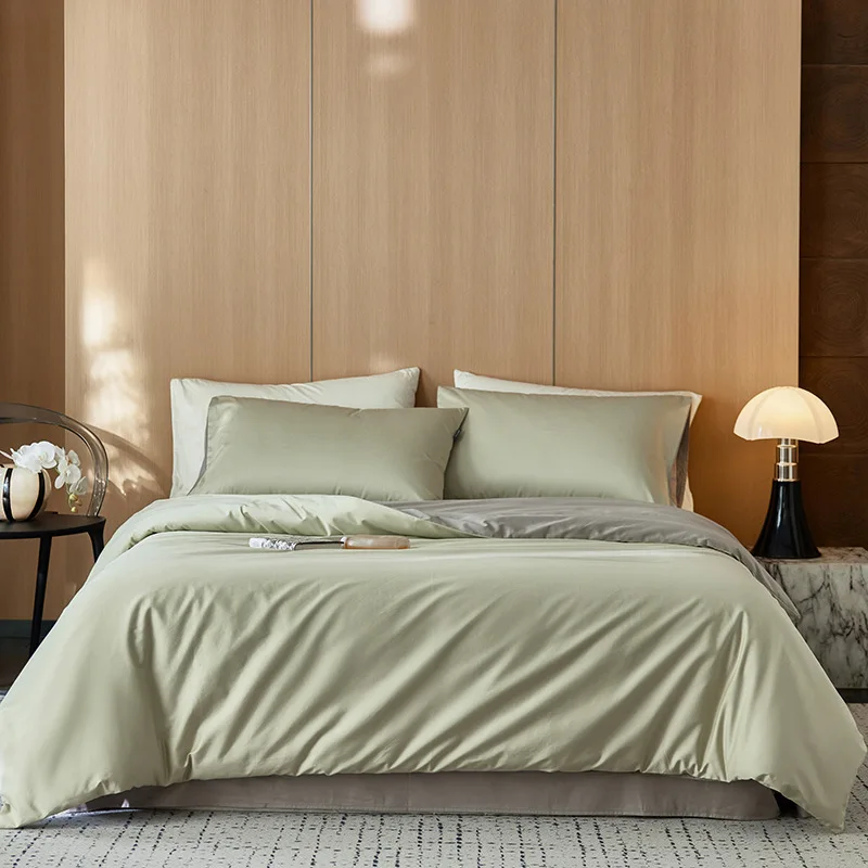 100% Bamboo Fiber Woven Modern Solid Color Bedding Set Super King Size Includes Flat Bed Sheet Fitted Duvet Cover