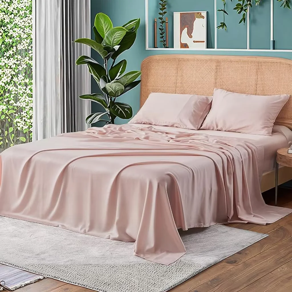 100% Bamboo Fiber Woven Modern Solid Color Bedding Set Super King Size Includes Flat Bed Sheet Fitted Duvet Cover