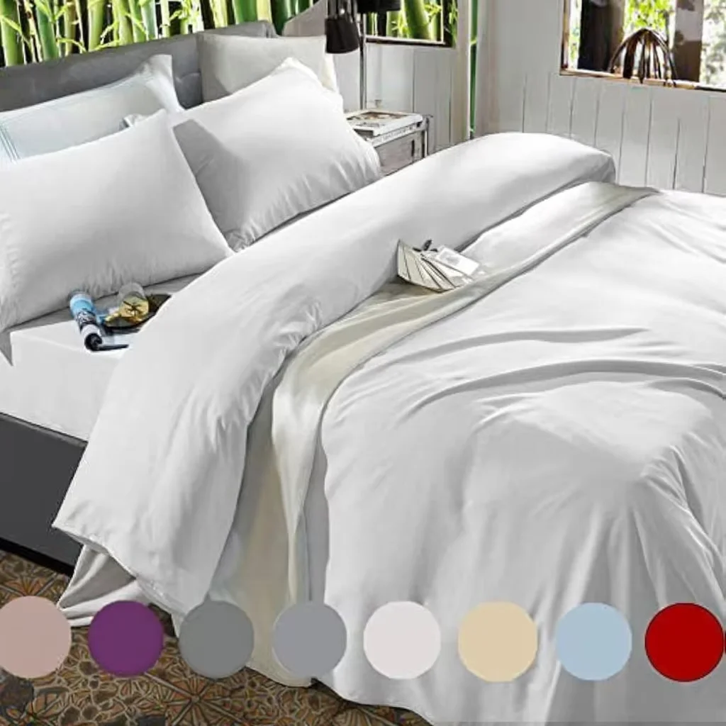100% Bamboo Fiber Woven Modern Solid Color Bedding Set Super King Size Includes Flat Bed Sheet Fitted Duvet Cover