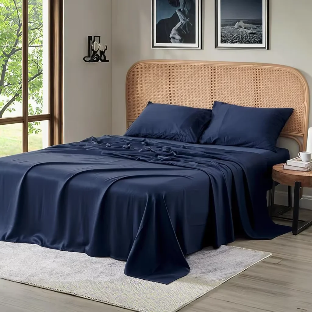Eco Friendly Luxury Bamboo Fiber Bedding Set 4 Pieces Breathable Bed Linen for Hotel Use