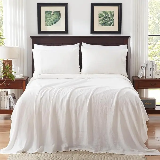 GOTS Certified 100% European Flax Linen Top Sheet Set 4pc Natrual Christmas Striped Solid Bed Sheet Pillow