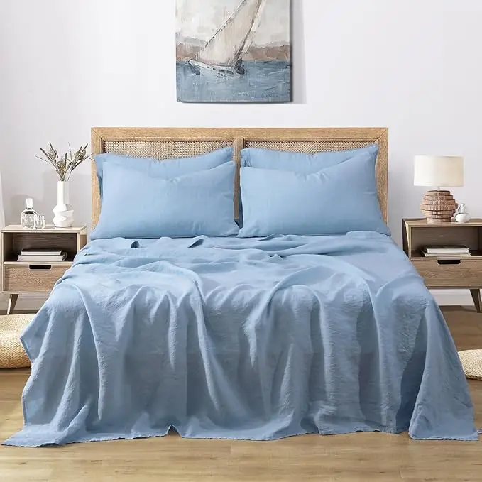 OEKO-Certified 100% Linen Bedding Set Modern Woven Comforter Bed Sheet Pillowcase King Queen for Hotel Bag Packaging