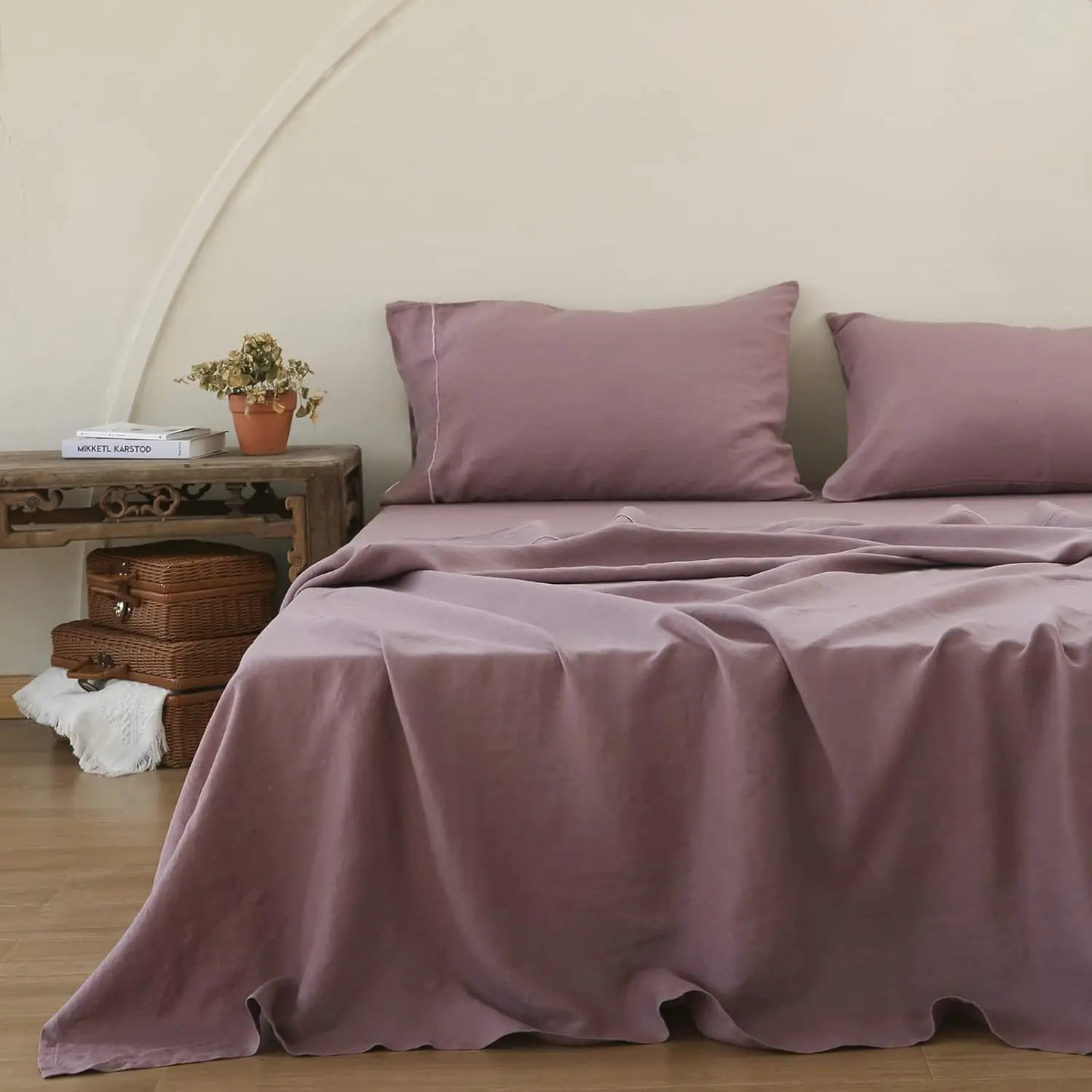 Factory Wholesale Organic French Linen Christmas Sheet Set Pillowcase European Linen Sheets Quilt Duvet Cover Set