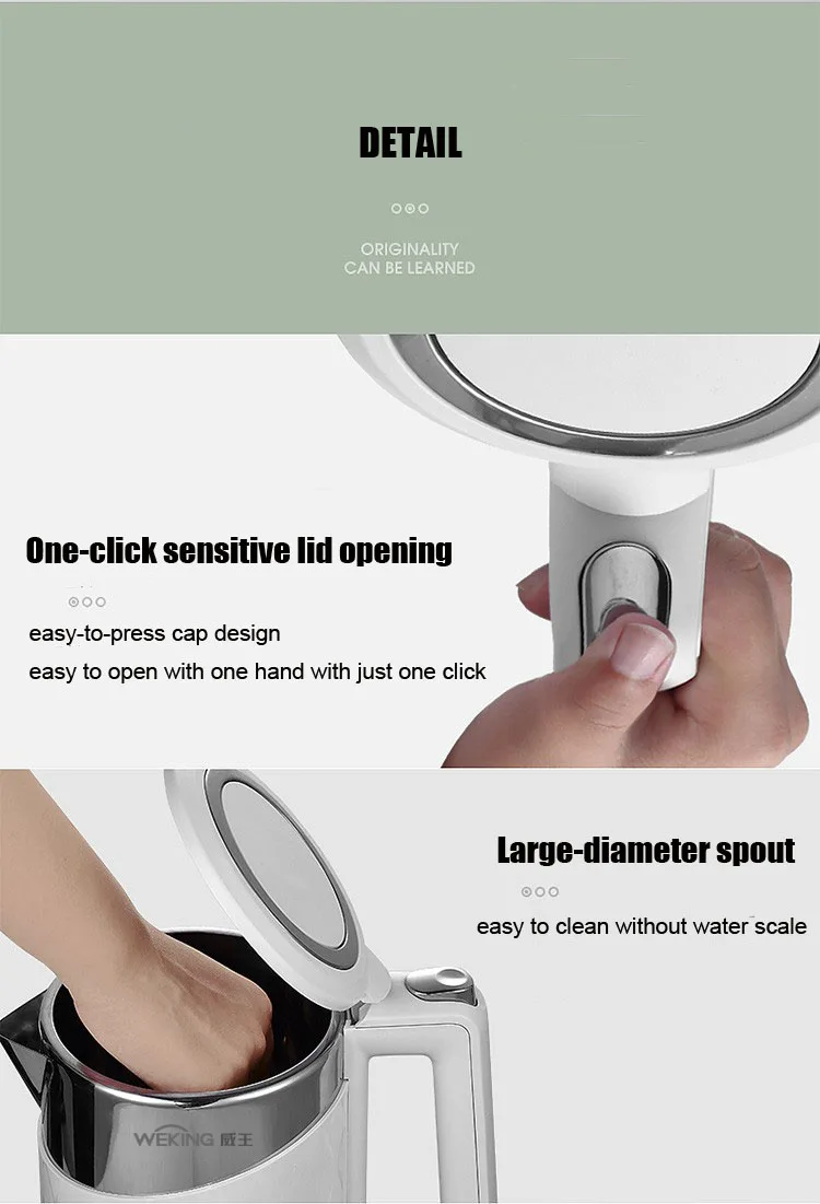 OEM/ODM Available 1.8L 1800W Stainless Steel Electric Kettle for Boiling Water Heater for Kitchen Appliances