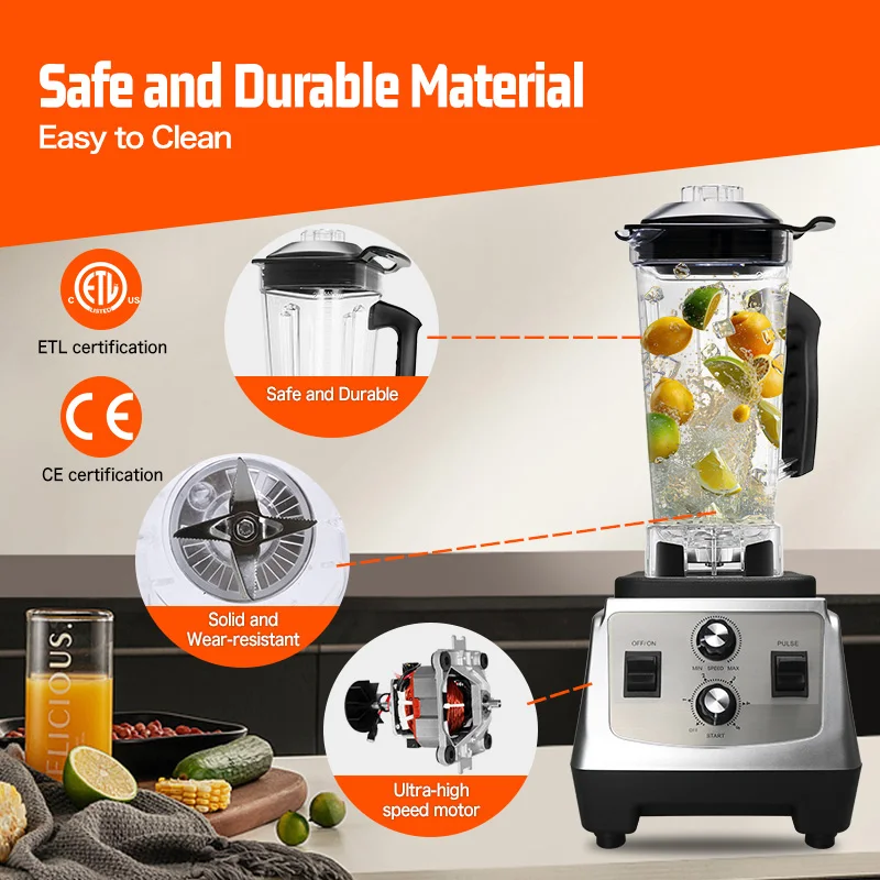 Electric Blender Machine with Automatic Variable Speed Push Button Controls BPA-Free Container 6 Blades for Household Hotel Use
