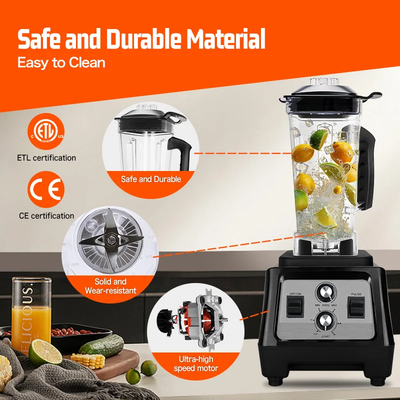 High Quality 2200 Watt Blender 2200 Rpm Milk Shake Blender Mixer for Commercial Wholesale Super Multi Mixer Fast Food Blender