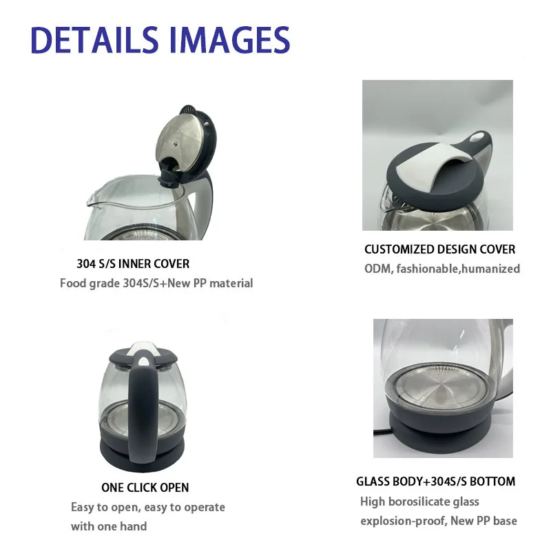 China New Arrivals Retro Glass Electric Kettle Industrial With 1L Heating Jacket Small Sensor Cordless Base