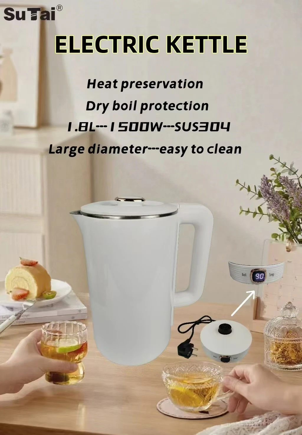 OEM/ODM Best Seller Double Wall Electric Digital Kettle Small Pot Heating Plate 1500W Temperature Control Factory Price