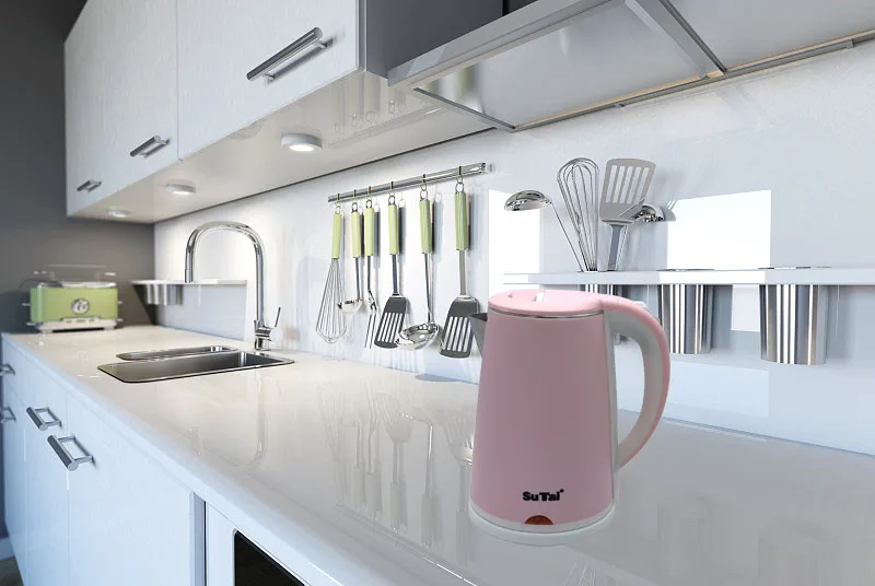 Sutai Cordless Base Electric Kettle 2L Double Wall Kettle for Home Appliance