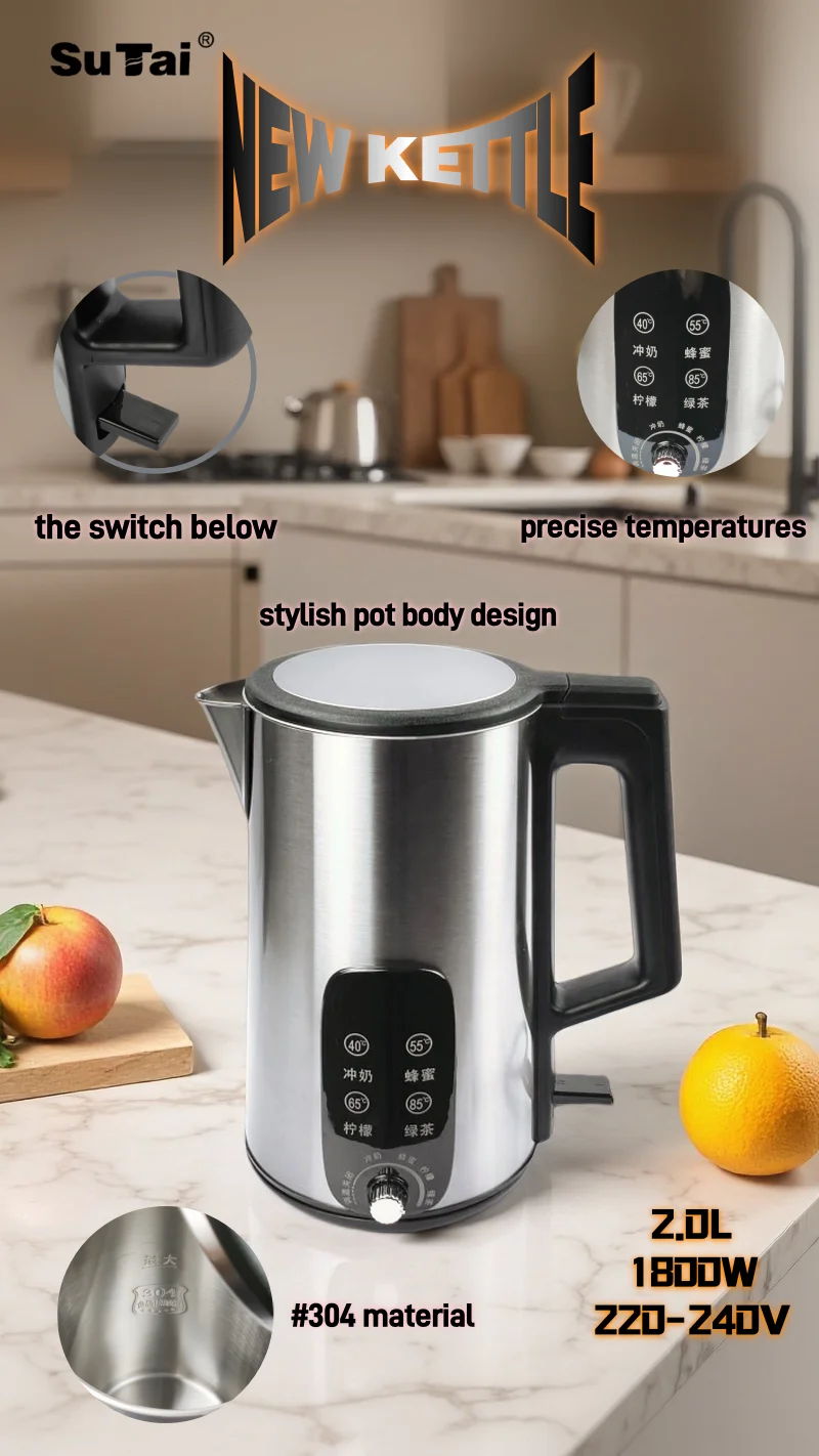 220V Portable Electric Kettle Multi-Function Office Water Heater 1.7L Stainless Steel Cool Touch Kettle Household Appliance