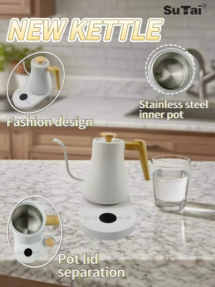 Smart 900ml Electric Kettle Black Stainless Steel Gooseneck Water Heater for Hotel Home Use Digital Display Temperature Control