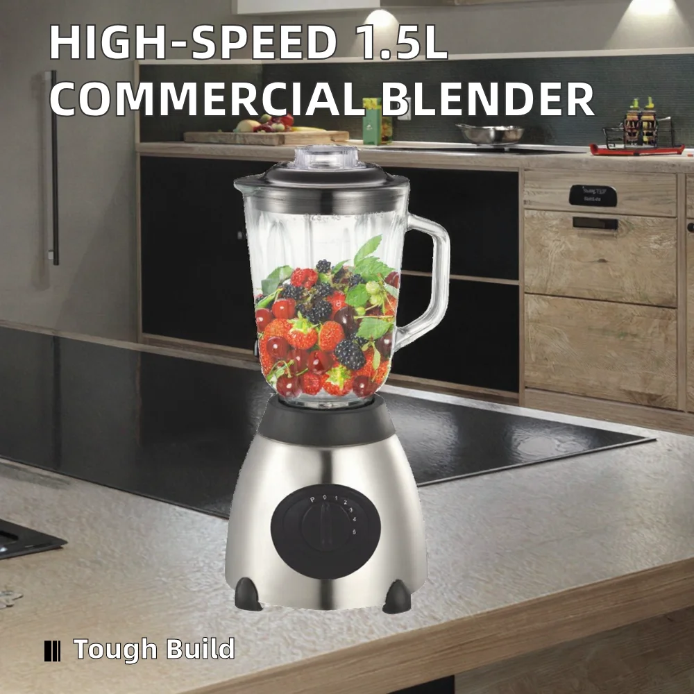Hot Sale 2-in-1 5 Speed Electric Food Mixer Blender 1.5L Juicer Stainless Steel Glass Jar for Household Commercial Use 2 Pulse