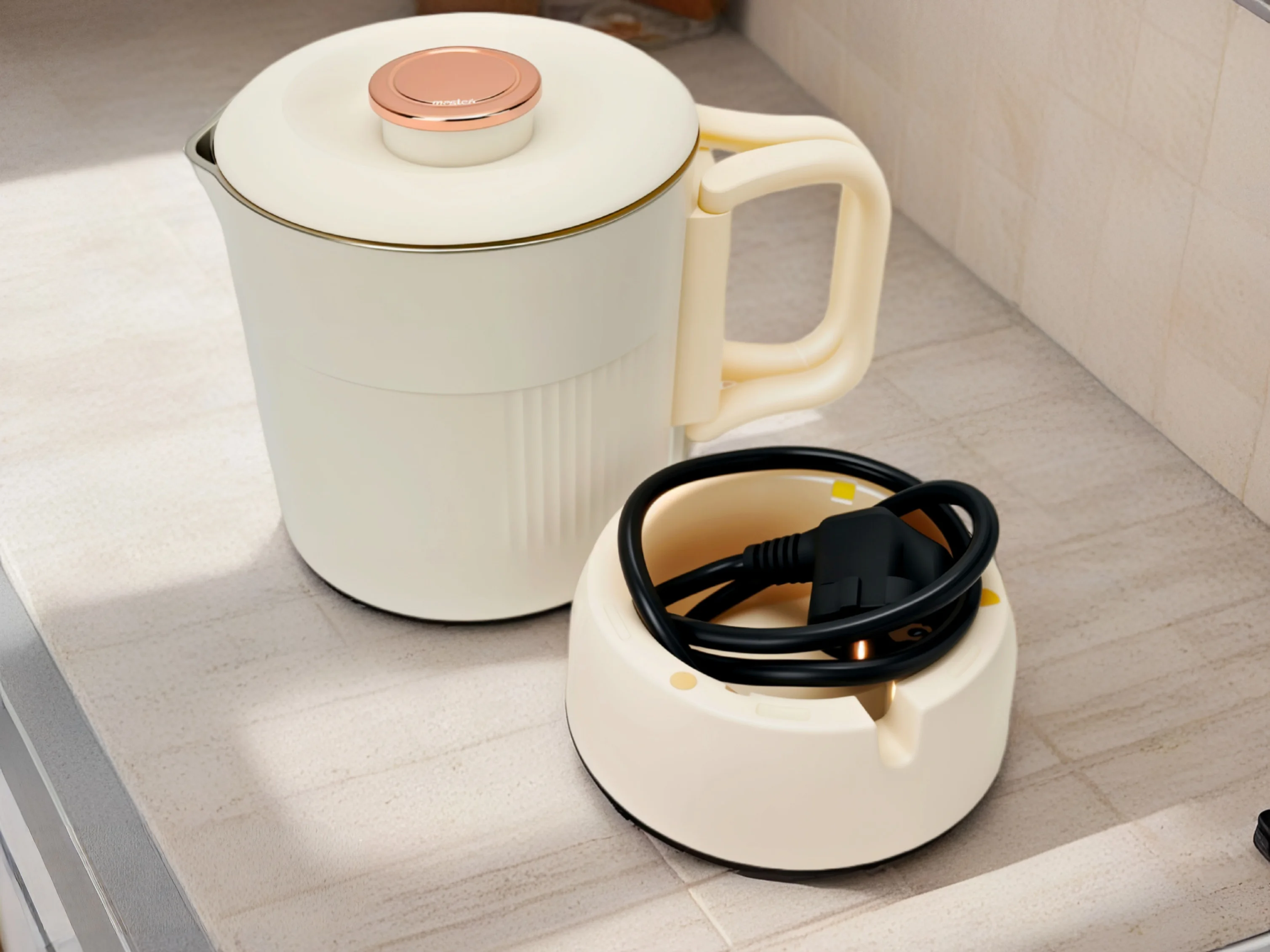 0.8L Dual Wall Stainless Steel Cooker Fast Boiling Keep Warm Portable Temperature Control 600W Cordless 220V for Household