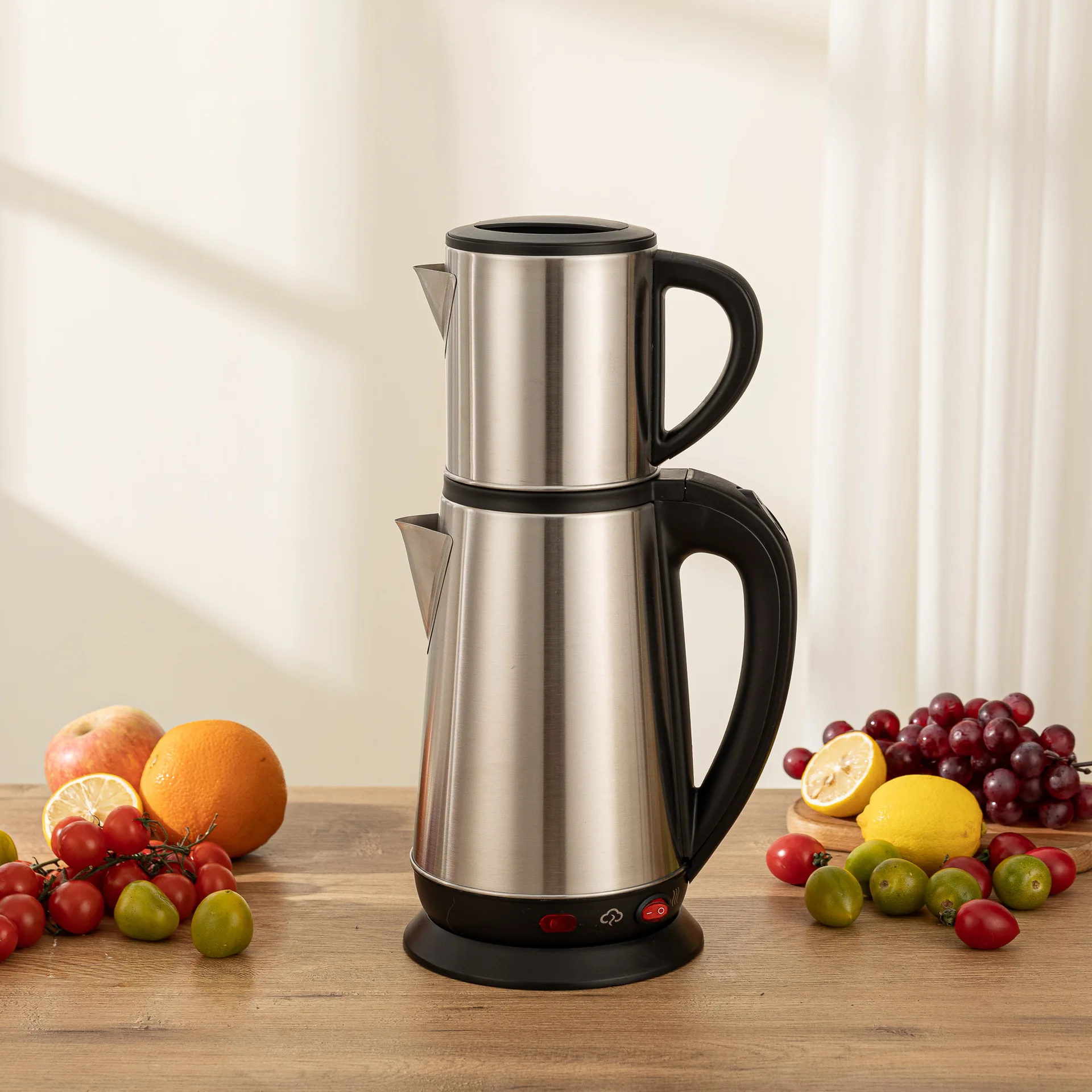 Automatic Shut Off Stainless Steel Stacking Pots - 1L&2L, Hidden Heating Elements, Easy Carrying for Household Use