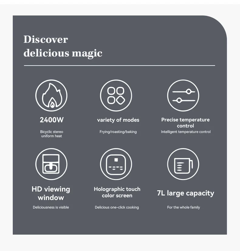 8L Stainless Steel High Power Oil-Free Household Commercial Multifunctional Air Fryer Oven 7L Smart 360° Hot Air Digital Touch