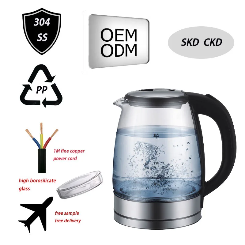 Hot Selling 1500W Cordless Digital Electric Glass Kettle with Quick-Boiling for Home Hotel Household or Camping