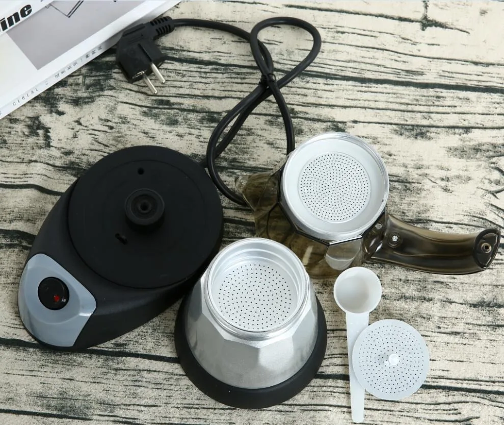 Portable Electric Moka Pot Espresso Maker Aluminum European American & British Standard for Car Use