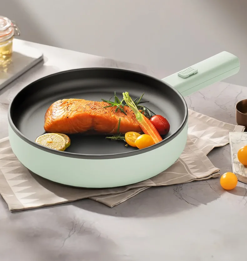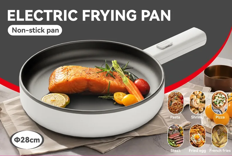 Multi-Functional Household Electric Flat-bottomed Hot Pot Energy Saver Frying Pan and Stir-Fry Pan with Tempered Glass Lid