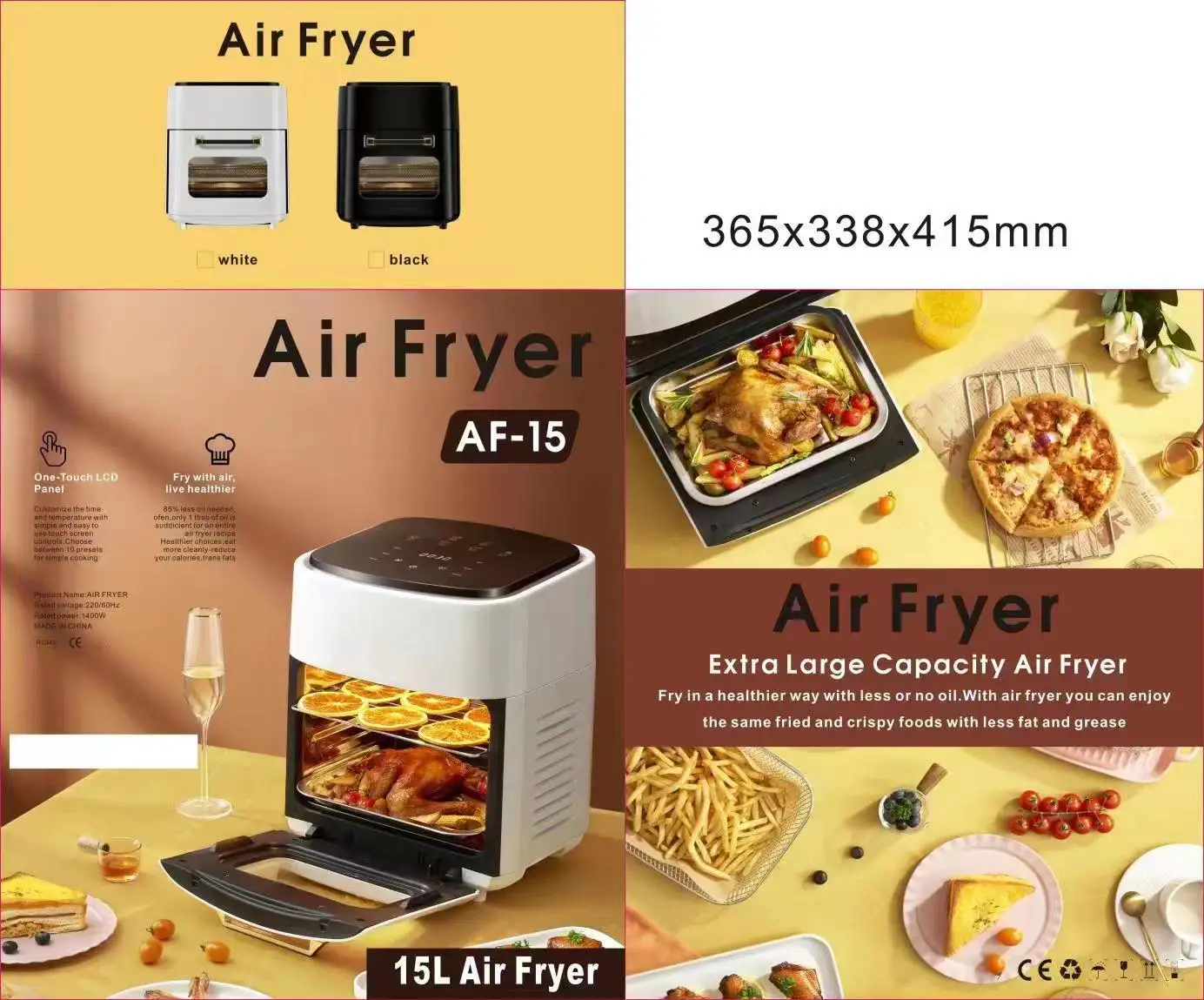 White Color 1L 2.5L 3L 3.5L 4L 5L 6L 7L 8L 12L Multi-function Smart air Fryers