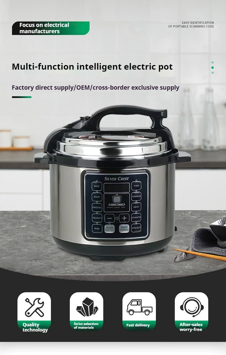 High Quality 5L/6L Stainless Steel Electric Pressure Cooker Multifunctional LED Display High Power Low Price for Household Use