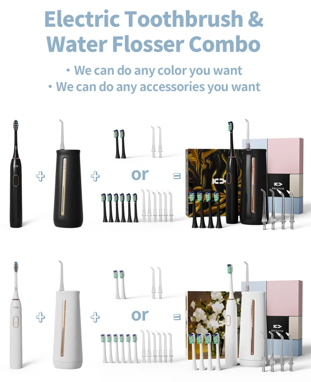 KANGYU Combo Water Flosser and Electric Toothbrush 300ml Rechargeable Oral Irrigator Waterjet for Household Outdoor Use