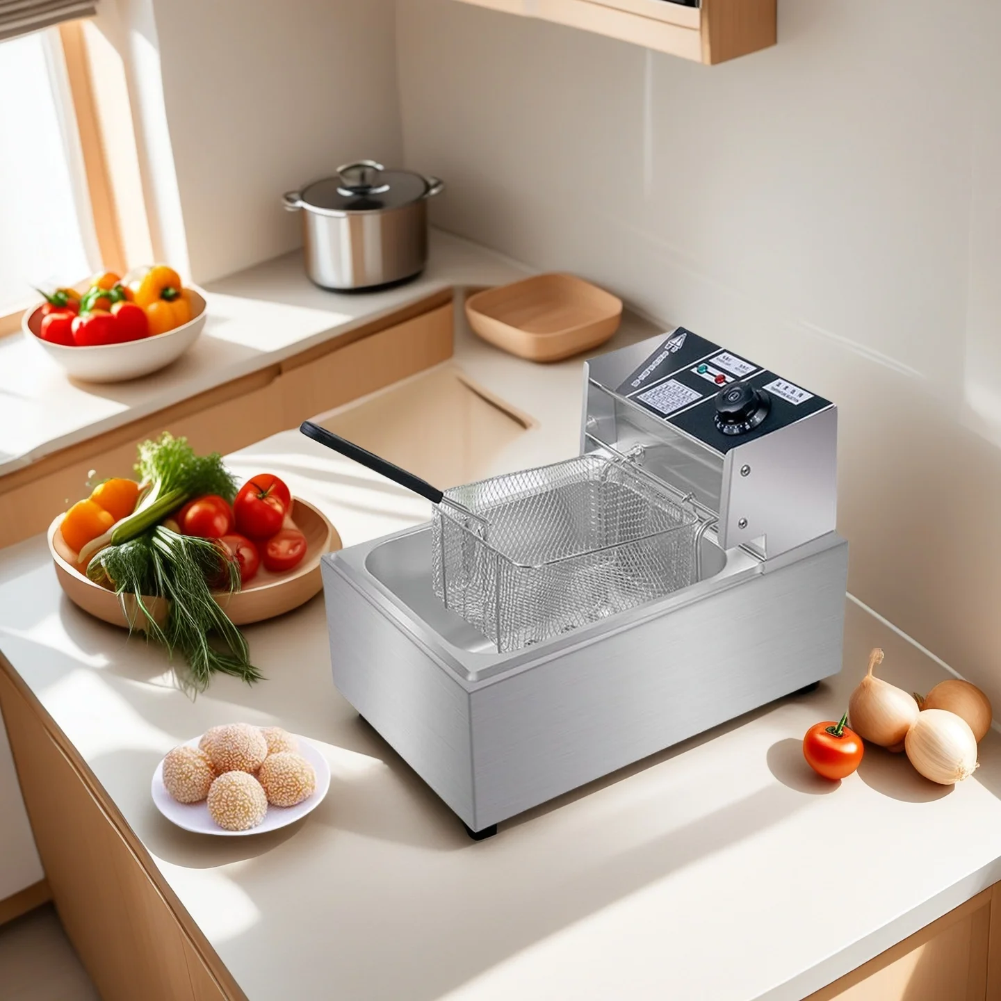 Commercial Electric 6L 2500w Home Fryer Counter Top Portable Stainless Steel Deep Fat Oil Frier Square Basket for Restaurants
