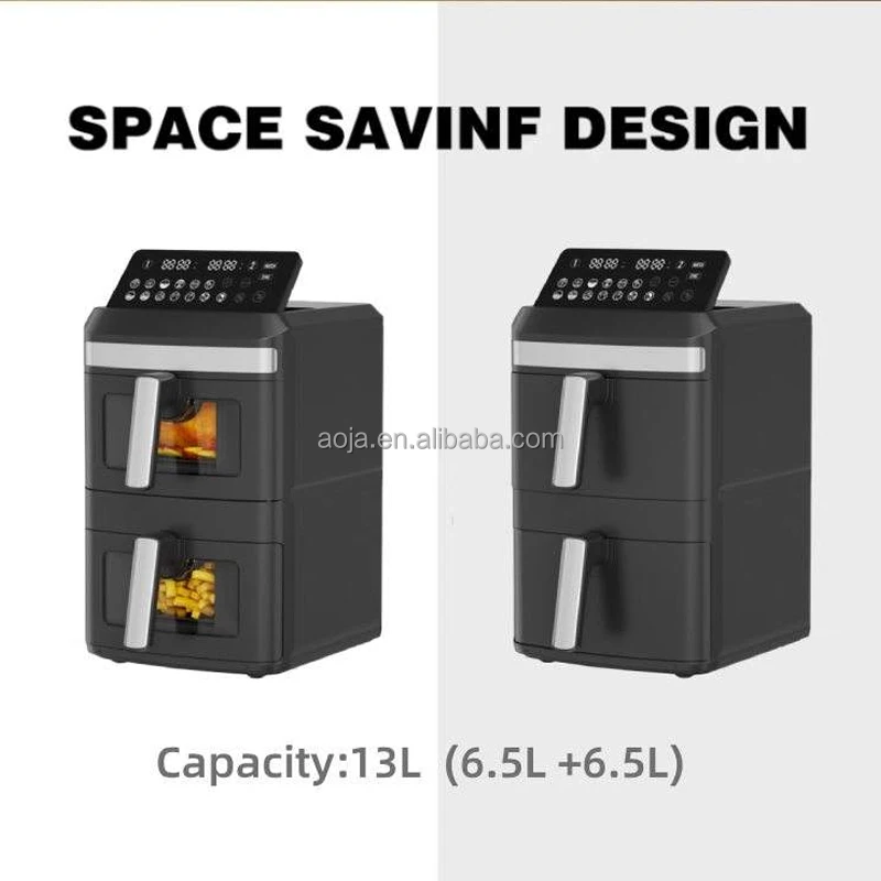 New Household Use Quality Large Capacity Air Fryer Double Stack Air Fryer 6.5L 13L Dual Basket Air Fryer with Observation Window