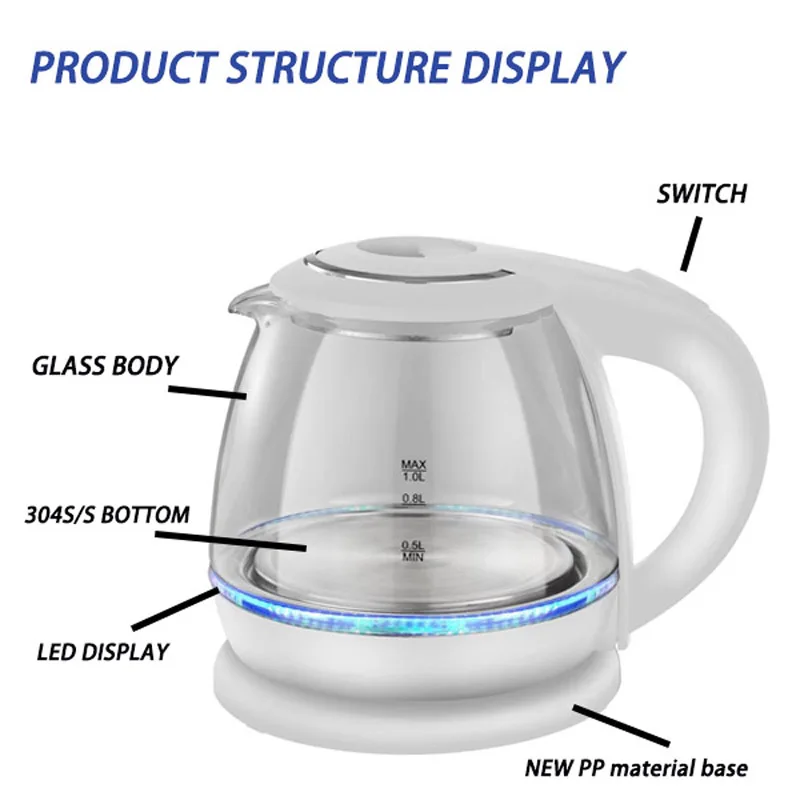 China Wholesale Manufacturing Fast Shipping High Quality Glass Boiling Water Tea Electric Kettle With Heating element