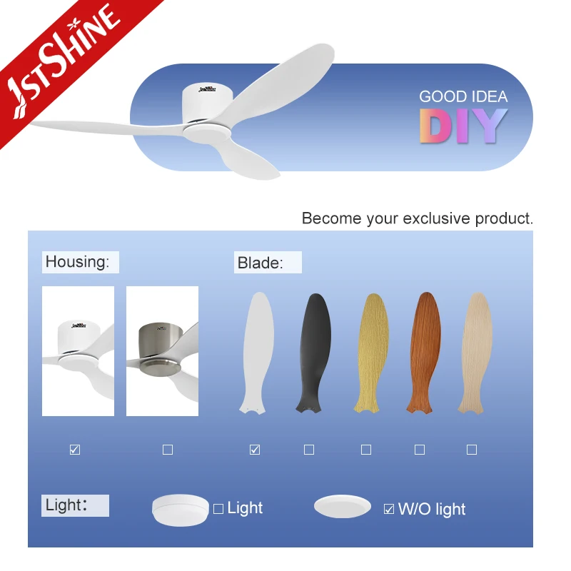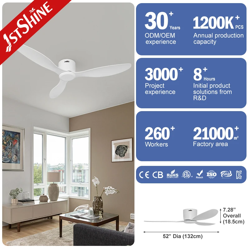 1stshine Ceiling Fan Low Profile 3 White ABS Blades Energy Efficient Ceiling Fan Without Light