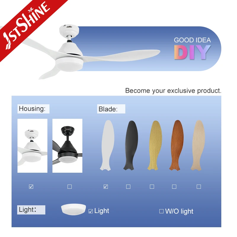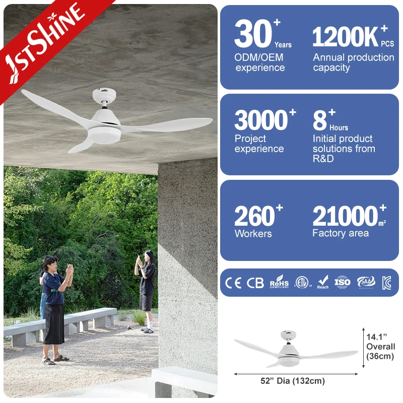 1stshine LED Ceiling Fan Dimmable White 52 Inches DC Motor High Speed Ceiling Fan with Led Light and Remote