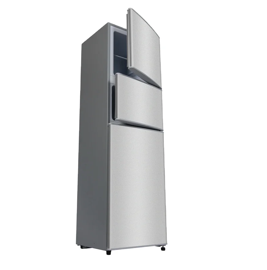 BCD-206S New 3-Door Stainless Steel Top Freezer Mini Fridge Low Noise Energy Efficient Portable Design for Hotel Use
