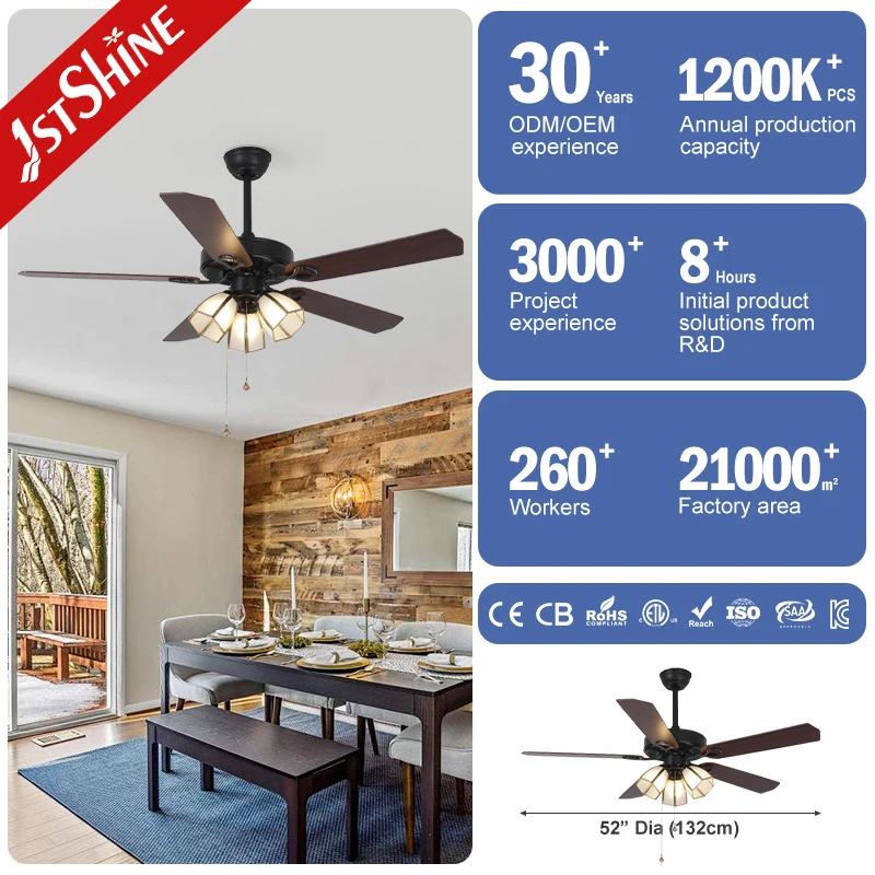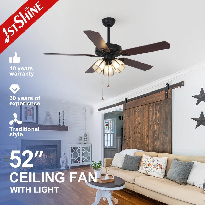 1stshine Ceiling Fan Classic Item European Style Pull Chain Glass Lamp Shade Ceiling Fan with Light