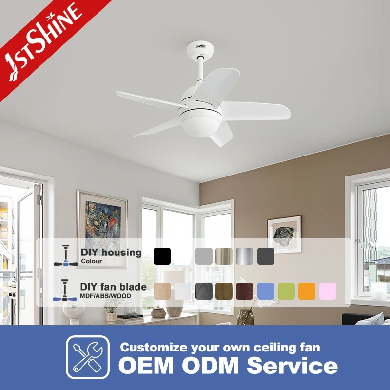 1stshine LED Ceiling Fan 110v White Color OEM ABS Blades DC Copper 34 Inches Ceiling Fan with LED Light