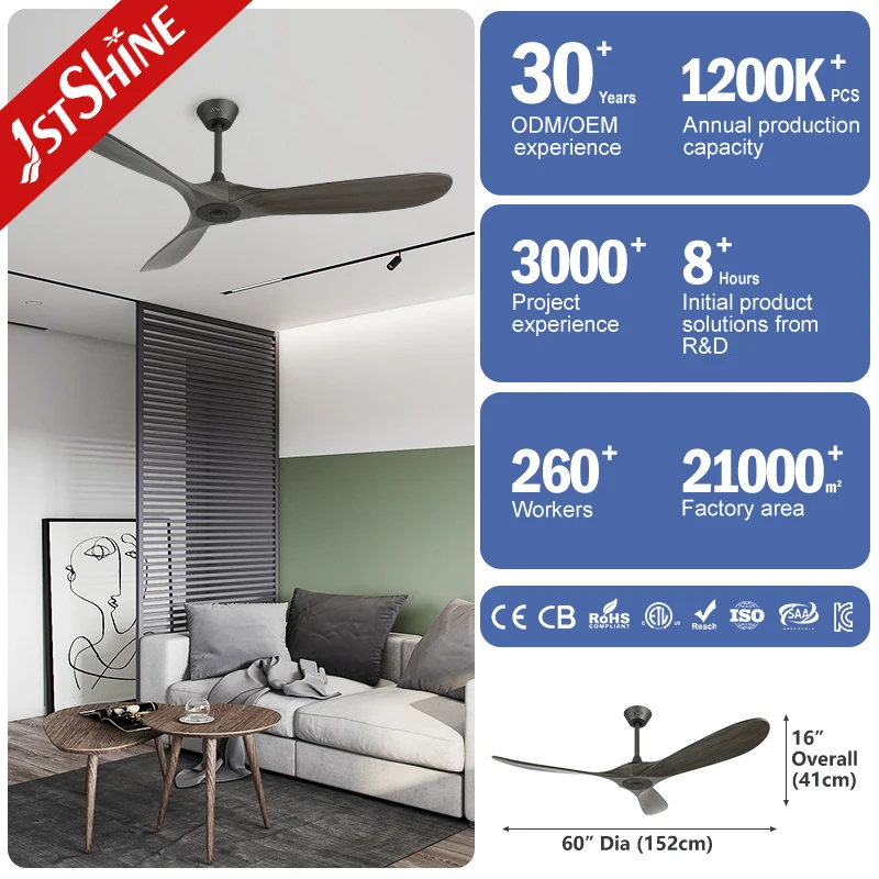 1stshine Ceiling Fan Factory 3 High Quality Easy Installation Wooden Blades Ceiling Fan with Remote