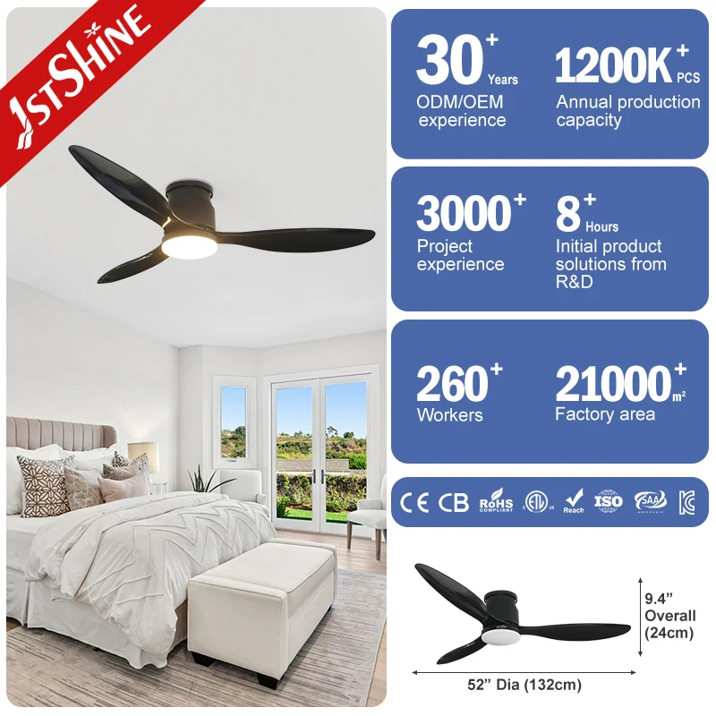 1stshine LED Ceiling Fan Low Profile Indoor Low Noise Energy Saving 6 Speeds 3 ABS Ceiling Fan