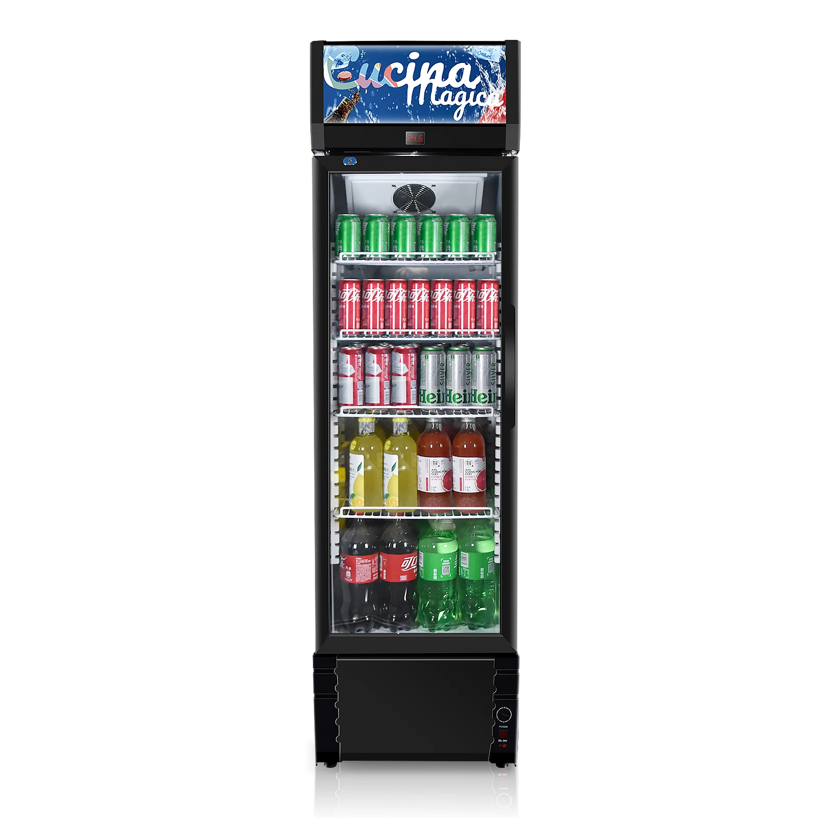 Small Capacity 358L Stainless Steel Portable Upright Single Door Cold Beverage Cooler Drink Display Cabinet Showcase for Use